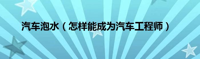 大家好,小常来为大家解答以下问题,对于汽车泡水,怎样能成为汽车工程师很多人还不知道,今天让我们一起来看看吧!