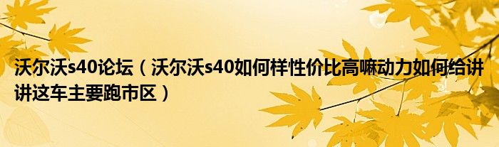 大家好,小常来为大家解答以下问题,对于沃尔沃s40论坛,沃尔沃s40如何样性价比高嘛动力如何给讲讲这车主要跑市区很多人还不知道,今天让我们一起来看看吧!