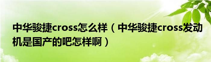 1,中华骏捷cross发动机是国产的吧怎样啊 :是国产车,性能一般,不如大众、丰田等进口发动机