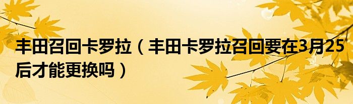 1,丰田卡罗拉召回要在3月25后才能更换吗:是的。丰田卡罗拉气囊目前每年都在召回的,暂时还没规定什么时候结束