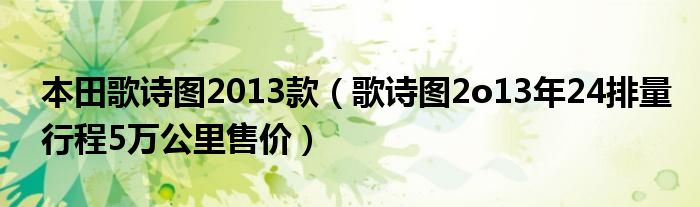 大家好,小常来为大家解答以下问题,对于本田歌诗图2013款,歌诗图2o13年24排量行程5万公里售价很多人还不知道,今天让我们一起来看看吧!