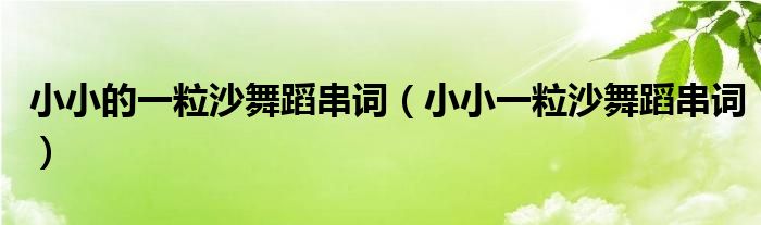大家好,小晋来为大家解答以下问题,关于小小的一粒沙舞蹈串词,小小一粒沙舞蹈串词很多人还不知道,今天让我们一起来看看吧!