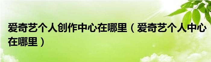 大家好,小晋来为大家解答以下问题,关于爱奇艺个人创作中心在哪里,爱奇艺个人中心在哪里很多人还不知道,今天让我们一起来看看吧!