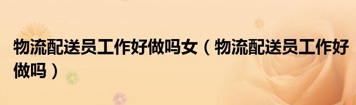 物流配送员工作好做吗女(物流配送员工作好做吗)