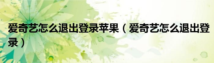 大家好,小晋来为大家解答以下问题,关于爱奇艺怎么退出登录苹果,爱奇艺怎么退出登录很多人还不知道,今天让我们一起来看看吧!