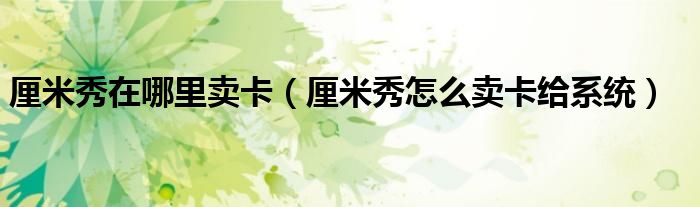 厘米秀在哪里卖卡(厘米秀怎么卖卡给系统)