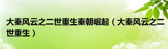 大秦风云之二世重生秦朝崛起(大秦风云之二世重生)