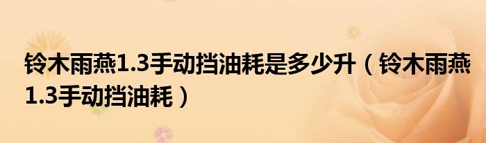 大家好,阳阳来为大家讲解下。铃木雨燕1.3手动挡油耗是多少升,铃木雨燕1.3手动挡油耗很多人还不知道,现在让我们一起来看看吧!