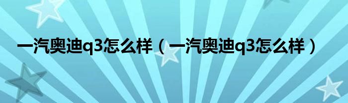 大家好,阳阳来为大家讲解下。一汽奥迪q3怎么样,一汽奥迪q3怎么样很多人还不知道,现在让我们一起来看看吧!