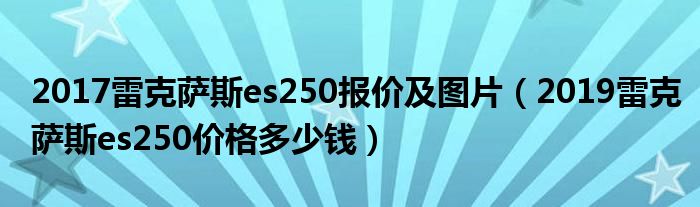 大家好,阳阳来为大家讲解下。2017雷克萨斯es250报价及图片,2019雷克萨斯es250价格多少钱很多人还不知道,现在让我们一起来看看吧!