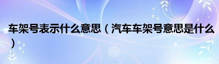 大家好,阳阳来为大家讲解下。车架号表示什么意思,汽车车架号意思是什么很多人还不知道,现在让我们一起来看看吧!