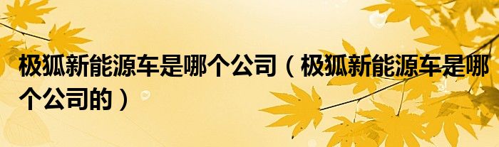 大家好,阳阳来为大家讲解下。极狐新能源车是哪个公司,极狐新能源车是哪个公司的很多人还不知道,现在让我们一起来看看吧!