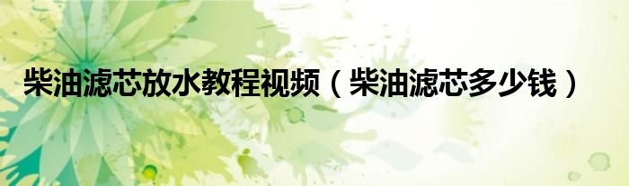 大家好,阳阳来为大家讲解下。柴油滤芯放水教程视频,柴油滤芯多少钱很多人还不知道,现在让我们一起来看看吧!