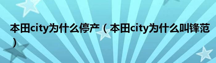 大家好,阳阳来为大家讲解下。本田city为什么停产,本田city为什么叫锋范很多人还不知道,现在让我们一起来看看吧!