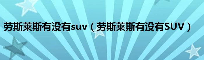 大家好,阳阳来为大家讲解下。劳斯莱斯有没有suv,劳斯莱斯有没有SUV很多人还不知道,现在让我们一起来看看吧!