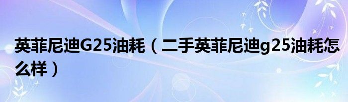 大家好,阳阳来为大家讲解下。英菲尼迪G25油耗,二手英菲尼迪g25油耗怎么样很多人还不知道,现在让我们一起来看看吧!