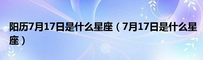 关于阳历7月17日是什么星座,7月17日是什么星座这个很多人还不知道,今天菲菲来为大家解答以上的问题,现在让我们一起来看看吧!