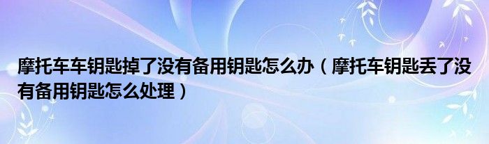 大家好,小美来为大家解答以上问题。摩托车车钥匙掉了没有备用钥匙怎么办,摩托车钥匙丢了没有备用钥匙怎么处理很多人还不知道,现在让我们一起来看看吧!
