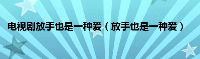 关于电视剧放手也是一种爱,放手也是一种爱这个很多人还不知道,今天菲菲来为大家解答以上的问题,现在让我们一起来看看吧!