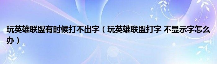关于玩英雄联盟有时候打不出字,玩英雄联盟打字 不显示字怎么办这个很多人还不知道,今天菲菲来为大家解答以上的问题,现在让我们一起来看看吧!