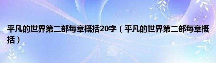 平凡的世界第二部每章概括20字(平凡的世界第二部每章概括)