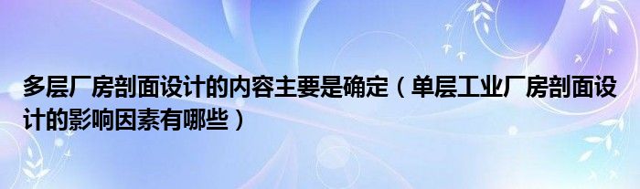 关于多层厂房剖面设计的内容主要是确定,单层工业厂房剖面设计的影响因素有哪些这个很多人还不知道,今天菲菲来为大家解答以上的问题,现在让我们一起来看看吧!