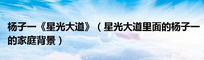关于杨子一《星光大道》,星光大道里面的杨子一的家庭背景这个很多人还不知道,今天菲菲来为大家解答以上的问题,现在让我们一起来看看吧!