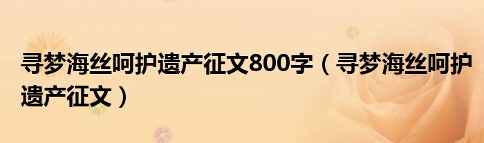 关于寻梦海丝呵护遗产征文800字,寻梦海丝呵护遗产征文这个很多人还不知道,今天菲菲来为大家解答以上的问题,现在让我们一起来看看吧!