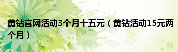 关于黄钻官网活动3个月十五元,黄钻活动15元两个月这个很多人还不知道,今天菲菲来为大家解答以上的问题,现在让我们一起来看看吧!