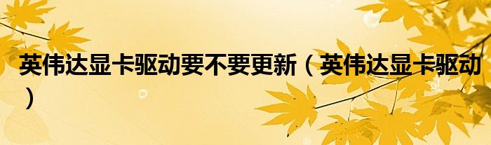 关于英伟达显卡驱动要不要更新,英伟达显卡驱动这个很多人还不知道,今天菲菲来为大家解答以上的问题,现在让我们一起来看看吧!