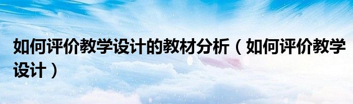 关于如何评价教学设计的教材分析,如何评价教学设计这个很多人还不知道,今天菲菲来为大家解答以上的问题,现在让我们一起来看看吧!