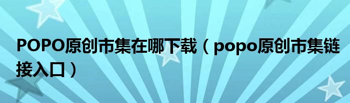 POPO原创市集在哪下载(popo原创市集链接入口)