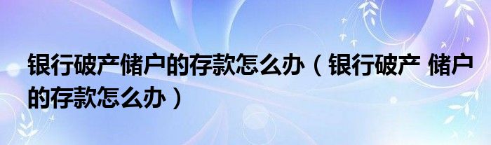 关于银行破产储户的存款怎么办,银行破产 储户的存款怎么办这个很多人还不知道,今天菲菲来为大家解答以上的问题,现在让我们一起来看看吧!