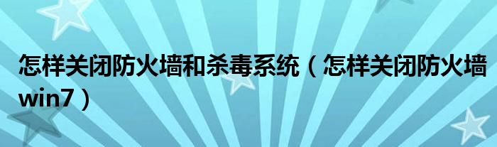 关于怎样关闭防火墙和杀毒系统,怎样关闭防火墙win7这个很多人还不知道,今天菲菲来为大家解答以上的问题,现在让我们一起来看看吧!
