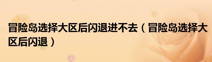 冒险岛选择大区后闪退进不去(冒险岛选择大区后闪退)