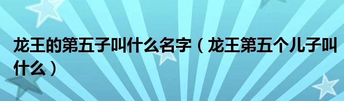 关于龙王的第五子叫什么名字,龙王第五个儿子叫什么这个很多人还不知道,今天菲菲来为大家解答以上的问题,现在让我们一起来看看吧!