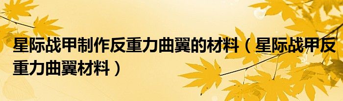 星际战甲制作反重力曲翼的材料(星际战甲反重力曲翼材料)