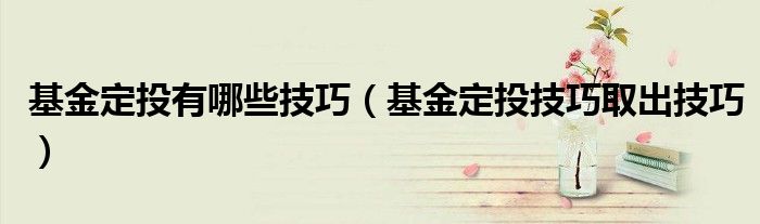 关于基金定投有哪些技巧,基金定投技巧取出技巧这个很多人还不知道,今天菲菲来为大家解答以上的问题,现在让我们一起来看看吧!