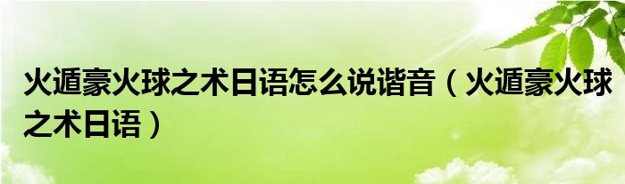 火遁豪火球之术日语怎么说谐音(火遁豪火球之术日语)