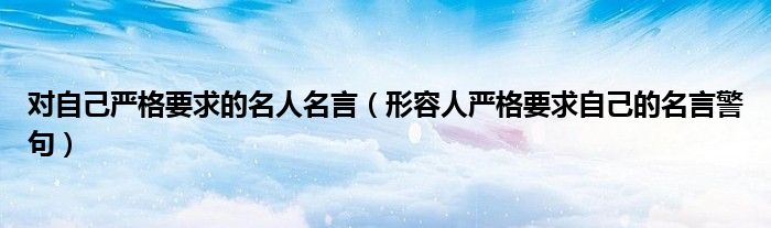 关于对自己严格要求的名人名言,形容人严格要求自己的名言警句这个很多人还不知道,今天菲菲来为大家解答以上的问题,现在让我们一起来看看吧!