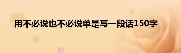 关于用不必说也不必说单是写一段话150字这个很多人还不知道,今天菲菲来为大家解答以上的问题,现在让我们一起来看看吧!