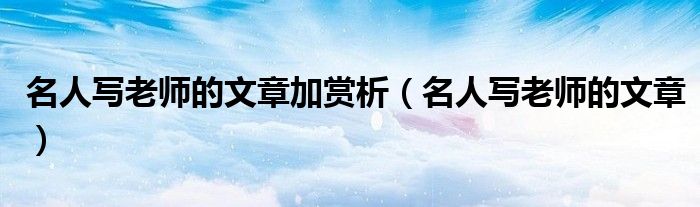 关于名人写老师的文章加赏析,名人写老师的文章这个很多人还不知道,今天菲菲来为大家解答以上的问题,现在让我们一起来看看吧!