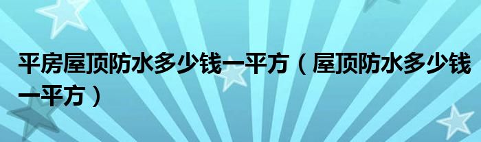 平房屋顶防水多少钱一平方(屋顶防水多少钱一平方)