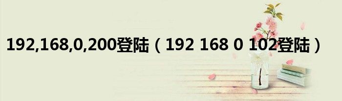 关于192,168,0,200登陆,192 168 0 102登陆这个很多人还不知道,今天菲菲来为大家解答以上的问题,现在让我们一起来看看吧!