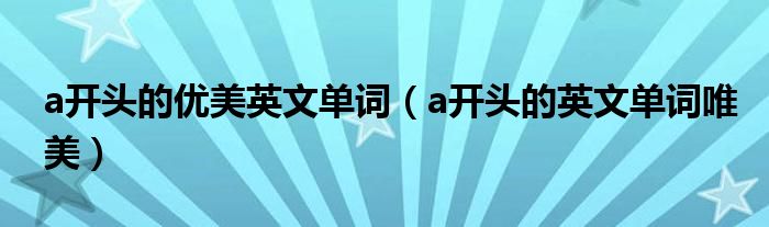 关于a开头的优美英文单词,a开头的英文单词唯美这个很多人还不知道,今天菲菲来为大家解答以上的问题,现在让我们一起来看看吧!