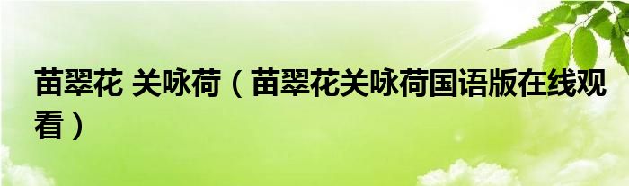 关于苗翠花 关咏荷,苗翠花关咏荷国语版在线观看这个很多人还不知道,今天菲菲来为大家解答以上的问题,现在让我们一起来看看吧!