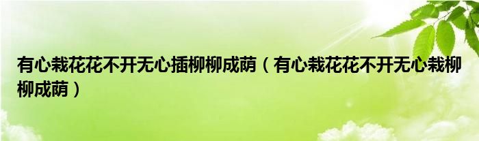 关于有心栽花花不开无心插柳柳成荫,有心栽花花不开无心栽柳柳成荫这个很多人还不知道,今天菲菲来为大家解答以上的问题,现在让我们一起来看看吧!