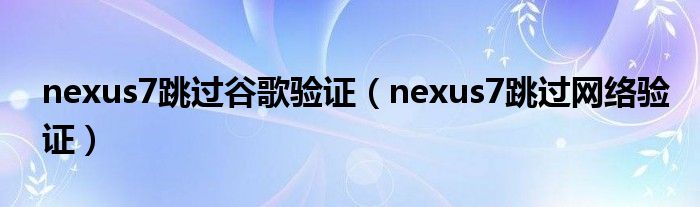 nexus7跳过谷歌验证(nexus7跳过网络验证)