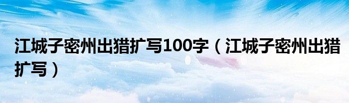 关于江城子密州出猎扩写100字,江城子密州出猎扩写这个很多人还不知道,今天菲菲来为大家解答以上的问题,现在让我们一起来看看吧!