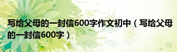 关于写给父母的一封信600字作文初中,写给父母的一封信600字这个很多人还不知道,今天菲菲来为大家解答以上的问题,现在让我们一起来看看吧!